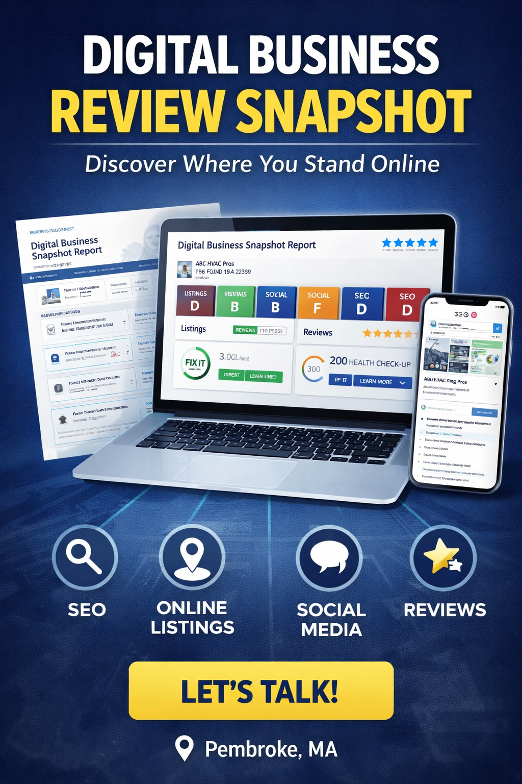 Digital Business Review Snapshotis a comprehensive diagnostic that shows you exactly how your business appears across the platforms that matter most — including local search results, business listings, online reviews, SEO visibility, digital presence, and AI-driven search environments.